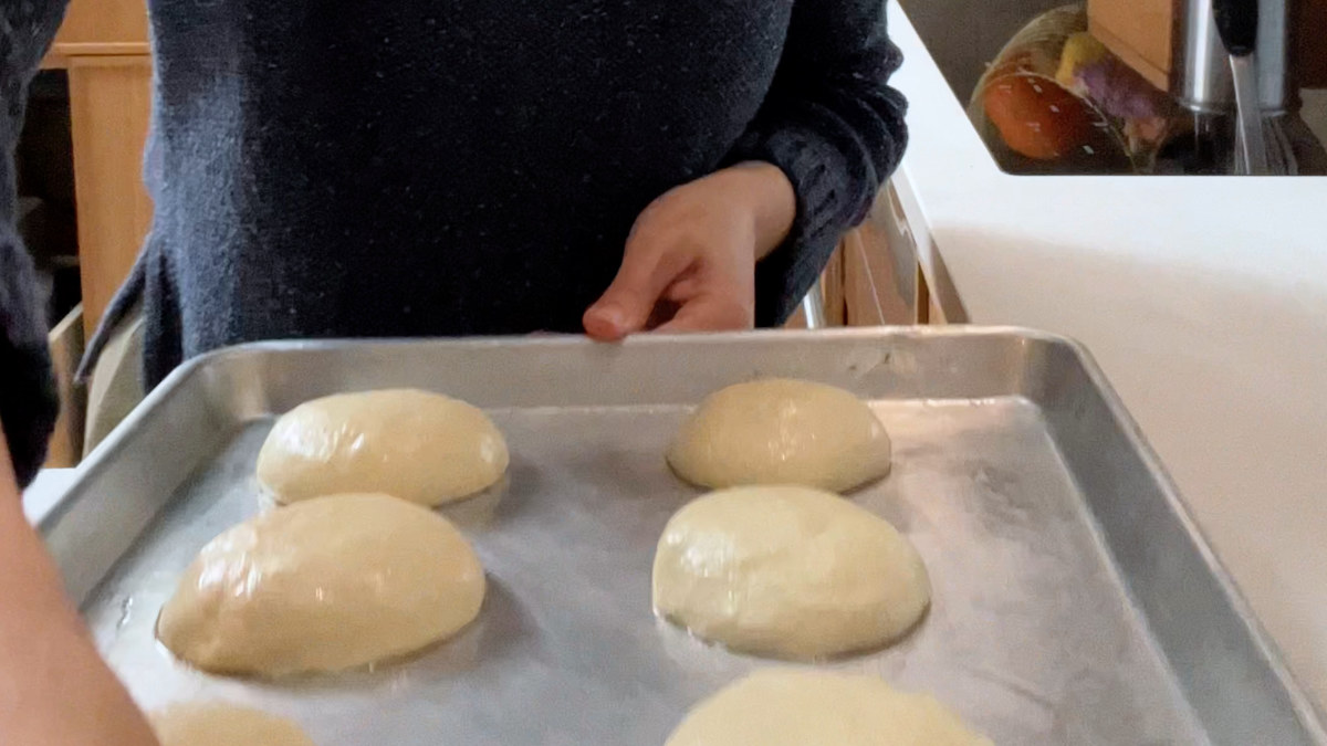 - Put each dough ball on an oiled tray, spray oil over the top, then cover it with plastic wrap or a lid.