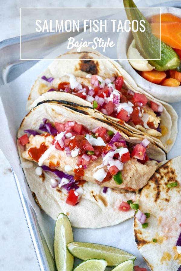 These Salmon Fish Tacos served baja-style will have you craving them every single taco Tuesday. The perfect bar food at home, these tacos are inspired by my favorite taco restaurant in San Diego. Best of all, they’re ready in 30 minutes!